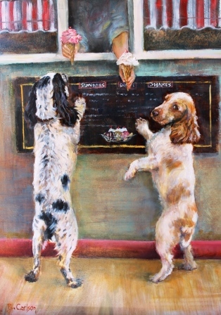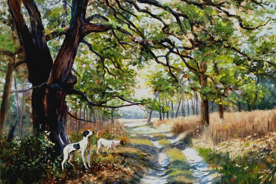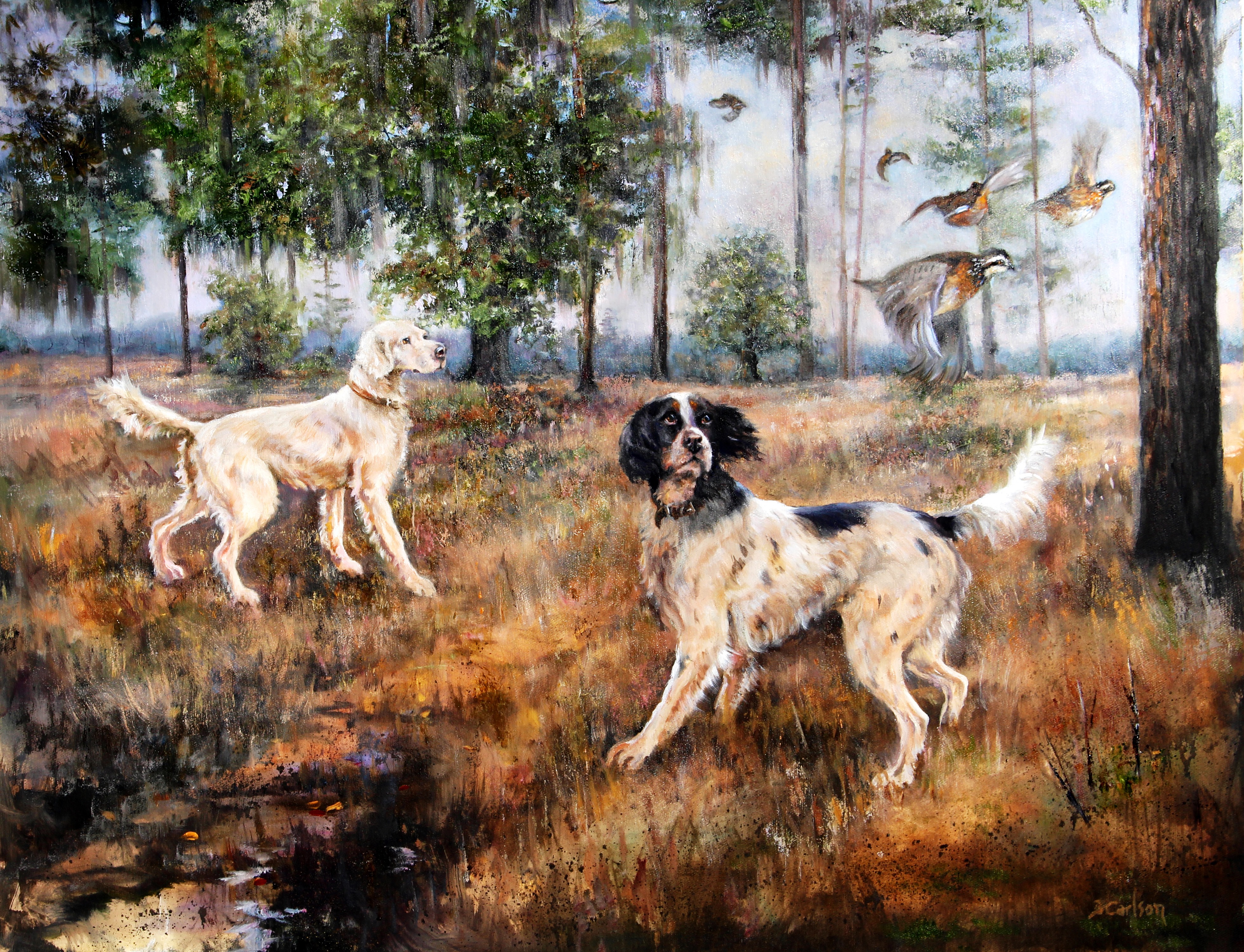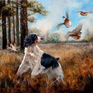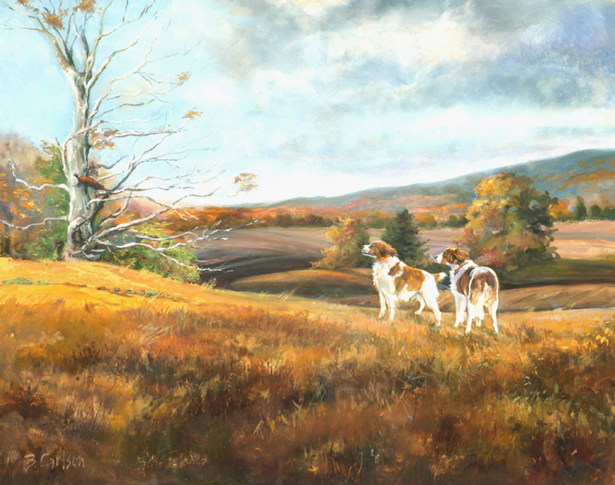 Beth Carlson’s sporting paintings, portraits and narrative paintings are coveted by many collectors across the country. For sporting collectors, the excitement of the flush, the beauty of the hunting dogs, the prize at the end of the day; Beth Carlson's paintings have soul and capture the excitement of the hunt for both the hunter and dog. In her narrative paintings Beth proves to be a witty story teller of a dog’s life. For portraiture her ability to constantly capture an individual animal’s personality and physical characteristics can be directly attributed to her far-reaching knowledge pertaining to animals in general. “She possesses a conviction of accuracy and authenticity which are both necessary and appreciated by her collectors,” says Robert Abbett about Carlson’s work.