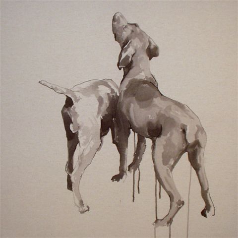 Ian Mason was born in Brighton, East Sussex in the United Kingdom in 1972. His formal education was with the University of Northumbria at Newcastle, BA (HONORS). He received a Degree in Fine Art (sculpture) – 1995 at the University of Brighton and later a PG Diploma in Interior Design – 2000. His interest lies in the structure and process of turning a subject into an image and the importance of the materials with which he works. Every mark he makes, although at first appearing loose and uncontrolled is actually very carefully laid down. His technique of thin washes and bold lines on the pristine canvas does not allow for error. Understandably Ian admires the work of the great Minimalists, Carl Andre, Donald Judd and the likes of Bruce Nauman especially in their use of process & truth to materials. When the viewer takes time to look closely at his dog paintings, one is rewarded with a depth of sensitivity rarely seen in contemporary art. Ian Mason currently lives & works in Cornwall, UK. To browse available inventory, click "View All Artworks" in the top right-hand corner of this page.