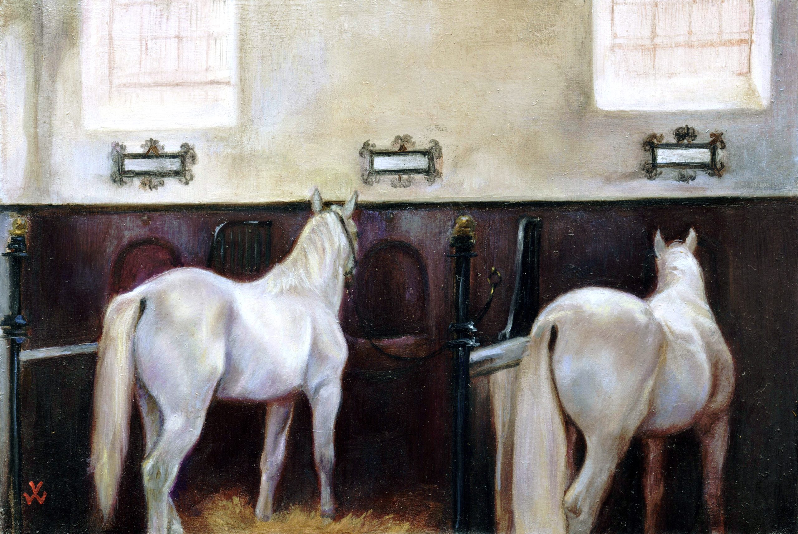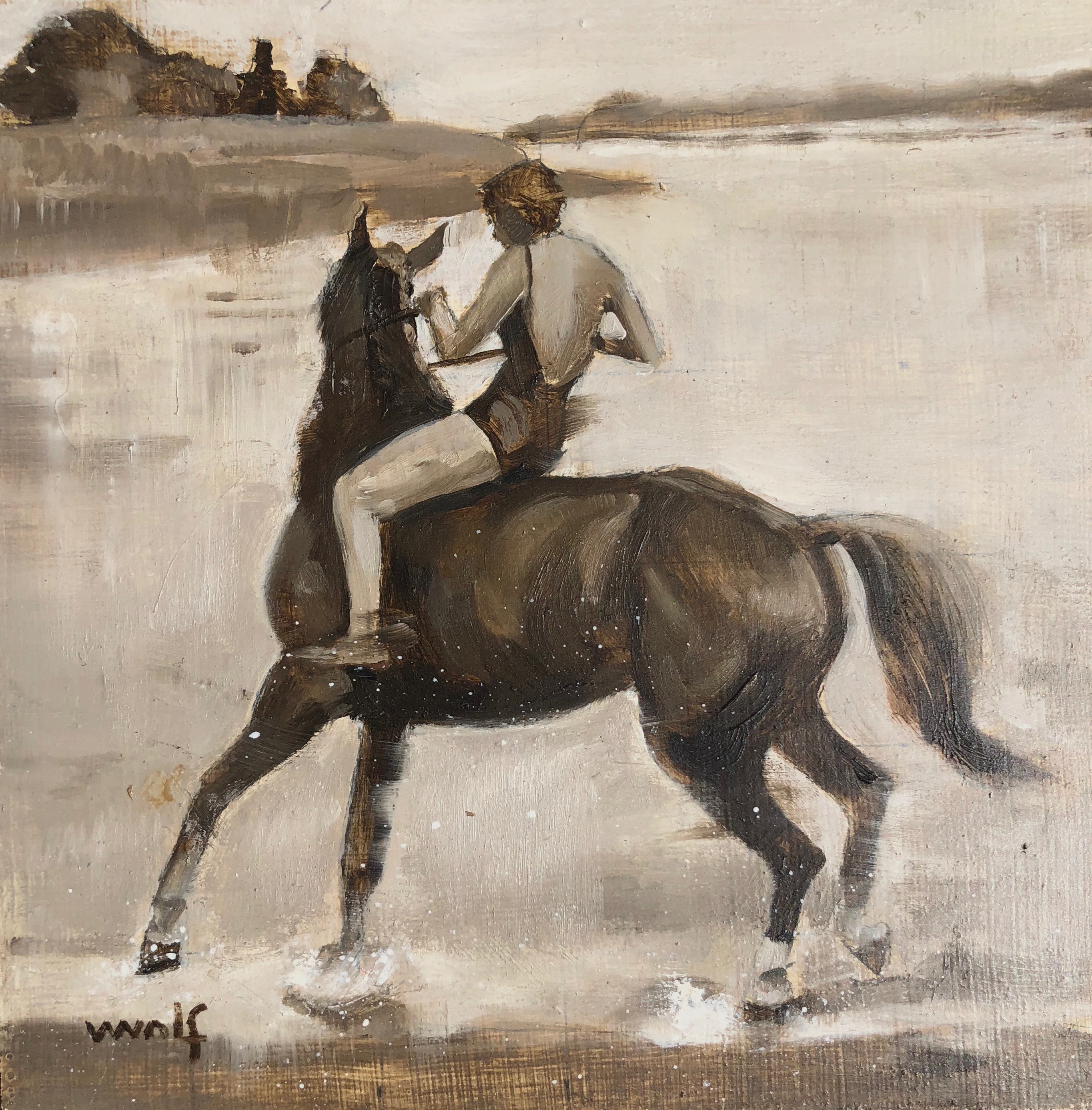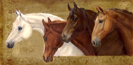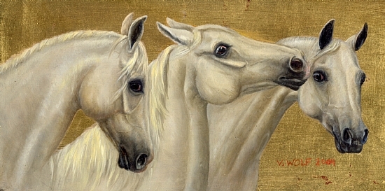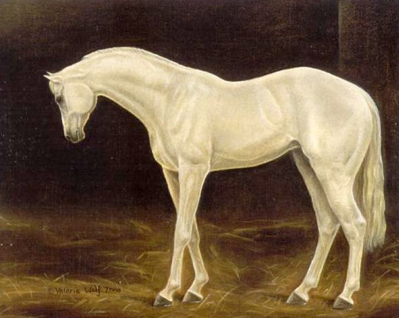 Valarie Wolf has made a lifetime commitment to represent the horse beautifully and accurately by incorporating a palette and style reminiscent of the Old Masters, by using subdued, elegant colors of yesteryear, and by slowly building up transparent glazes, achieving paintings which are luminous. She holds a B.A. Degree in art.