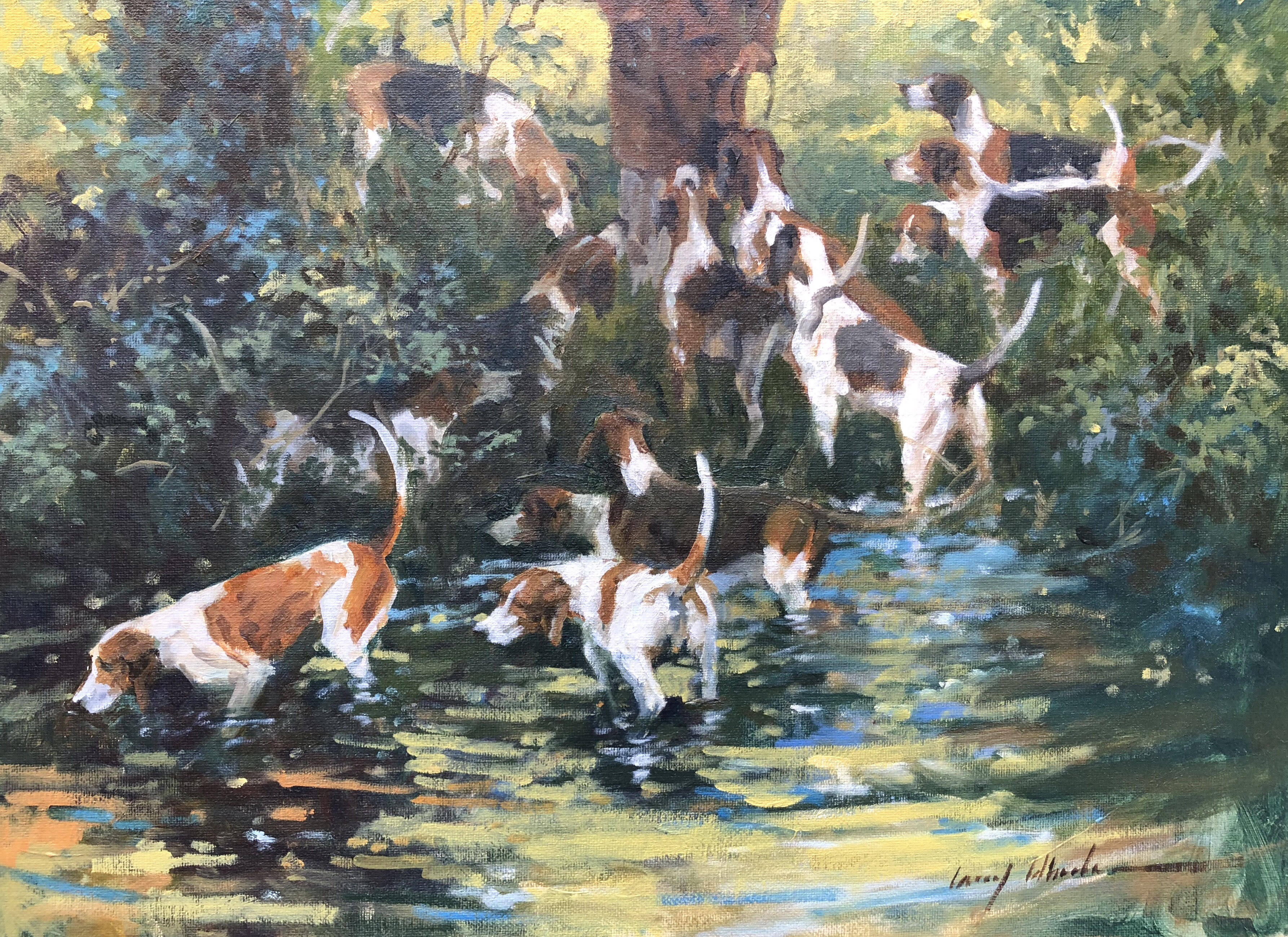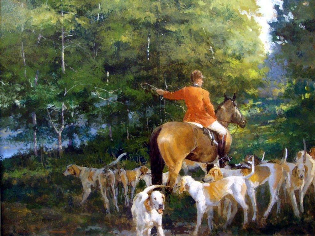 Dog and Horse Fine Art will host a reception 6:00 – 8:30 p.m., Friday, February 15,  featuring miniature jewelry and sculpture by BURNETT DE LOISELLE and PAUL EATON, VPRMS, MAA, as well as honoring beloved Hounds and their contribution to family sports.  Miniature artist Beth de Loiselle’s oils for the collection will include interchangeable horse/hound miniatures.  The canine guests will be handled by the MASTERS OF THE FOXHOUNDS ASSOCIATION OF AMERICA, in full livery.  The gallery will also have sporting art created for the occasion by such artists as BETH CARLSON, LARRY WHEELER AND JOSEPH SULKOWSKI.  A percentage of sales of sporting art will benefit the Masters of Foxhounds of America Foundation.*