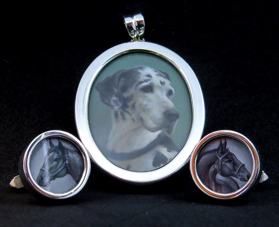 Paul Eaton, a British silversmith, goldsmith and sculptor that specializes in sporting art, will show Beth de Loiselle oil miniatures in his jewelry, his dog charms in gold or sterling silver and miniature dog, horse and fox sculptures, which he casts in bronze or sterling silver.