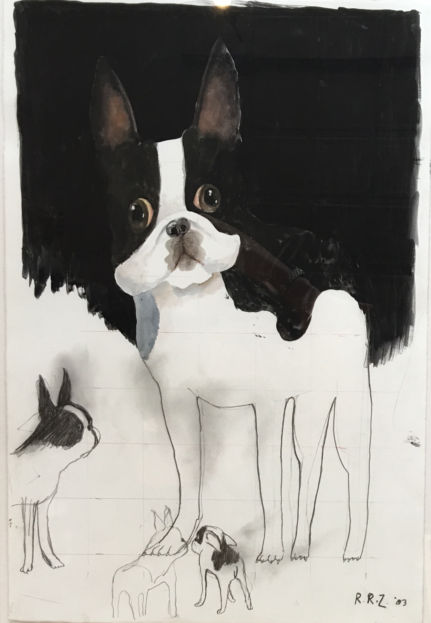 - “Boston Terrier” gouache and graphite 22″ x 15″ $4500