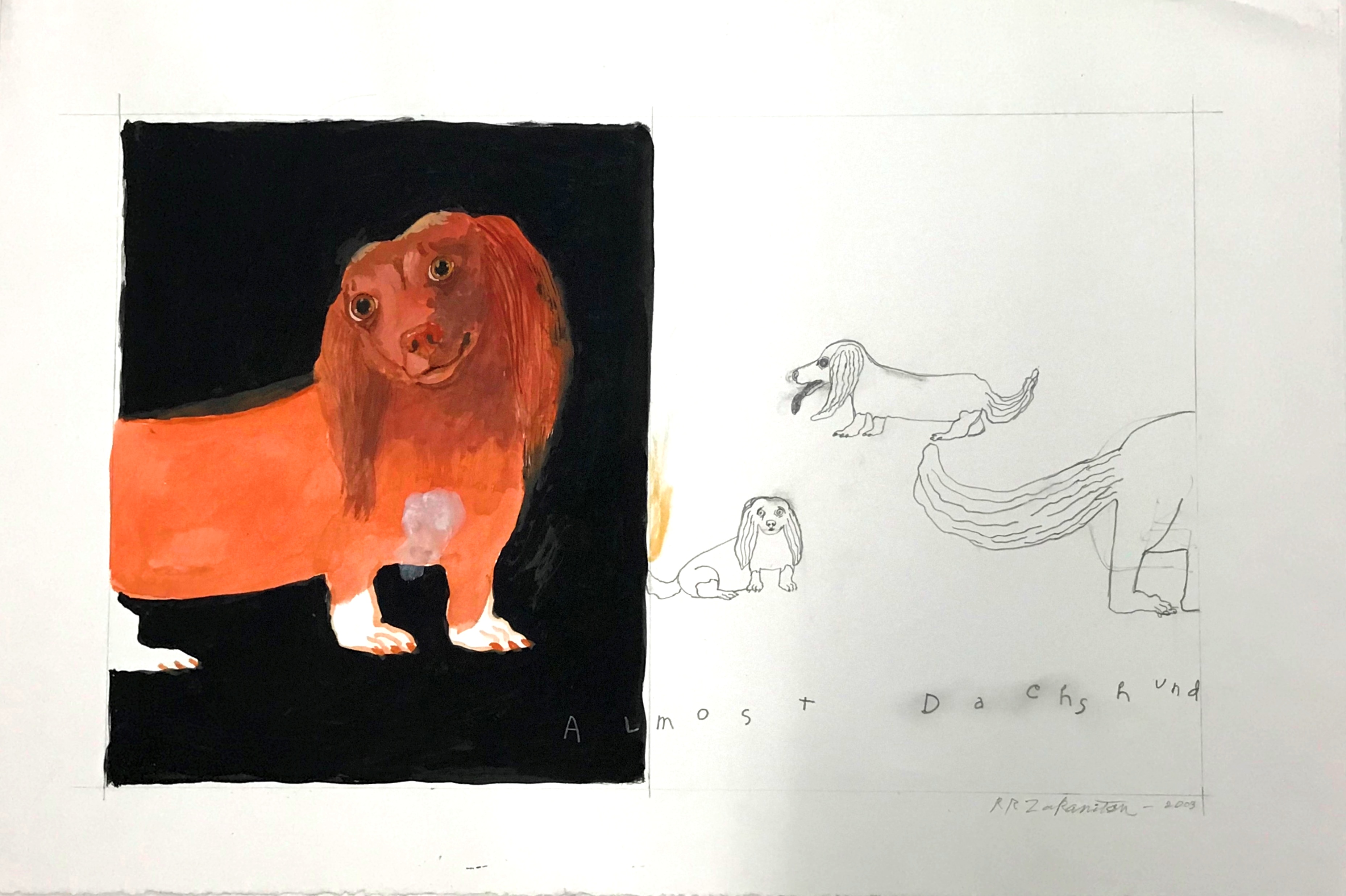 - “Almost Dachshund” gouache and graphite, 20″ x 30″ $5900
