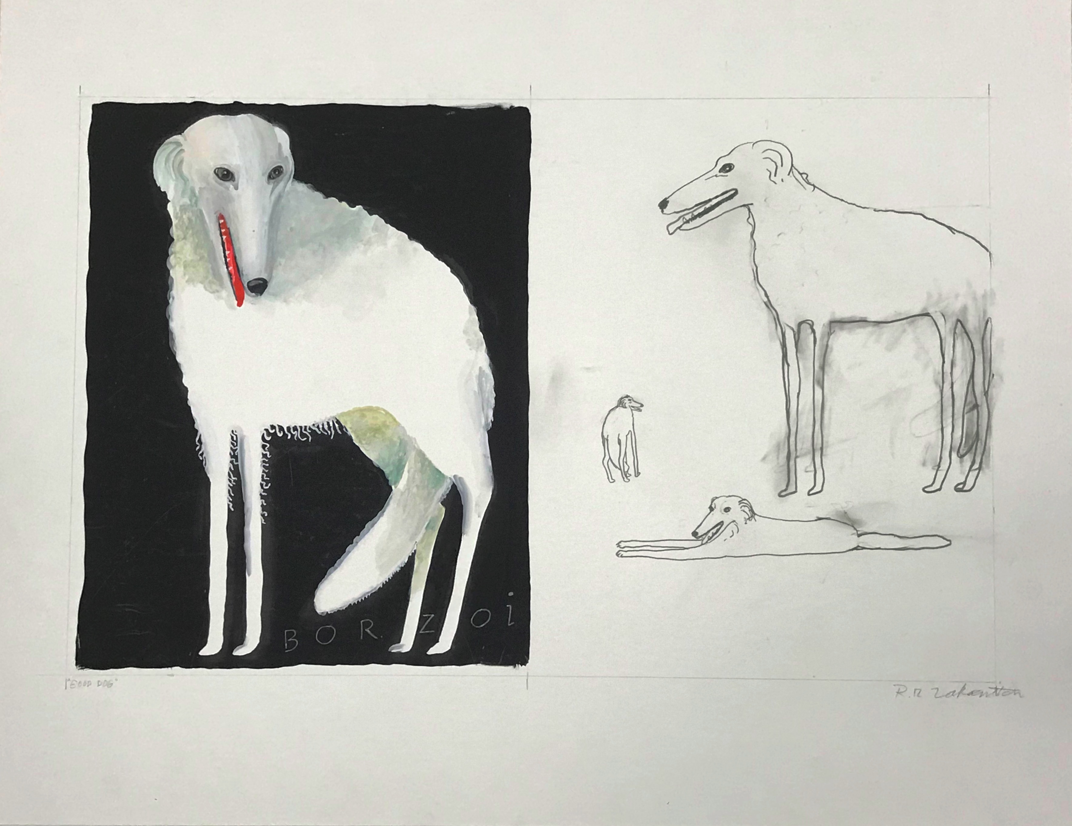 - “Good Dog” (Borzoi) gouache and graphite, 20″ x 30″ $5900