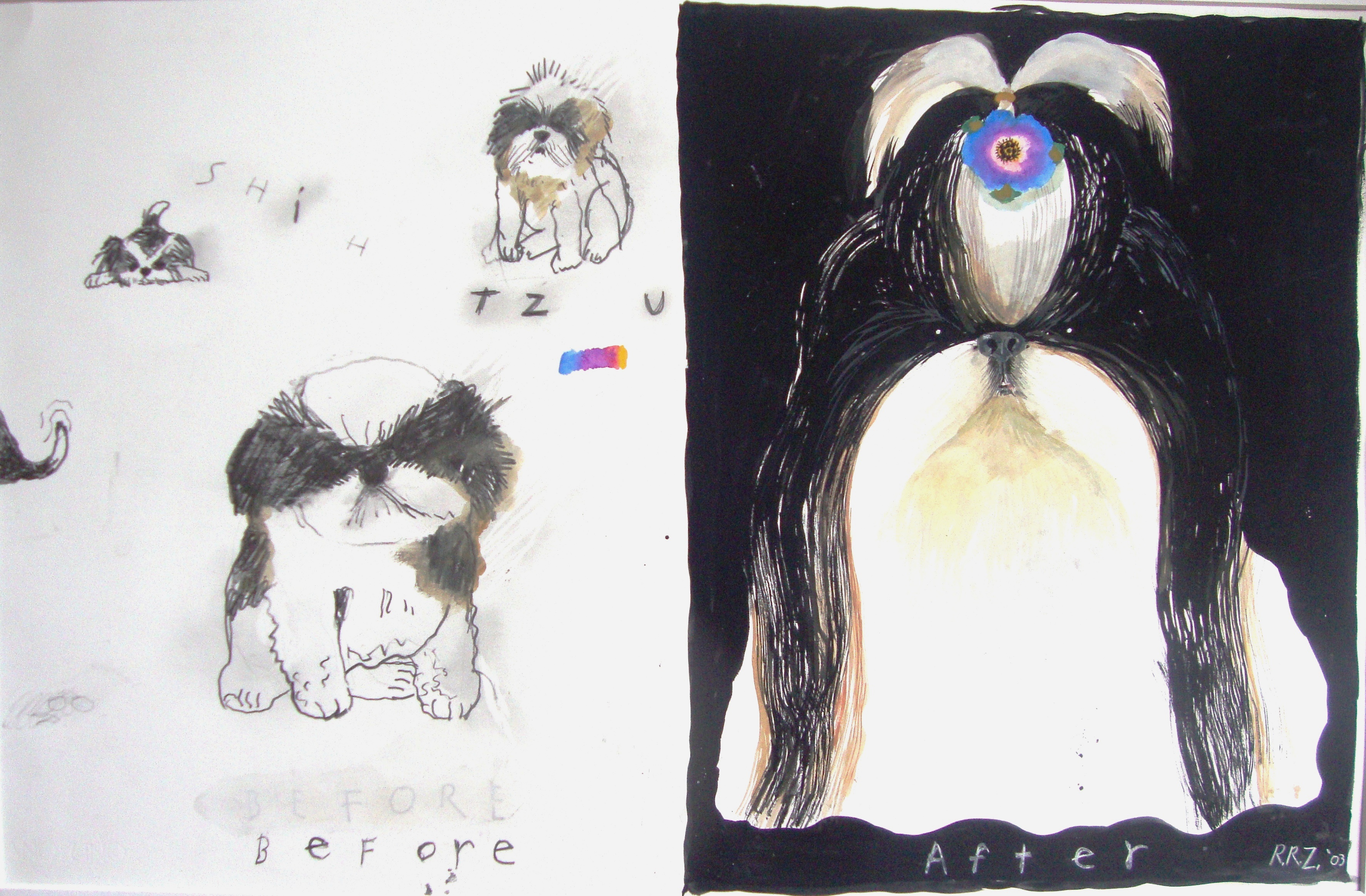 - “Shih Tzu” gouache and graphite, 24 1/2″ x 16″ $4500