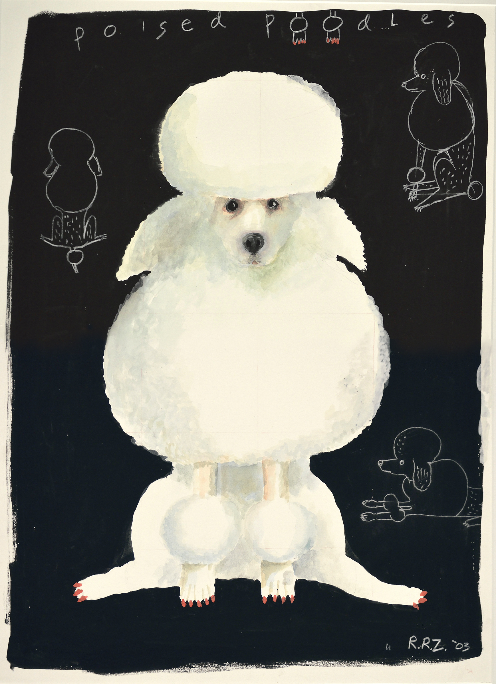 - “Poised White Poodle” gouache and pencil, 23″ x 17″ SOLD