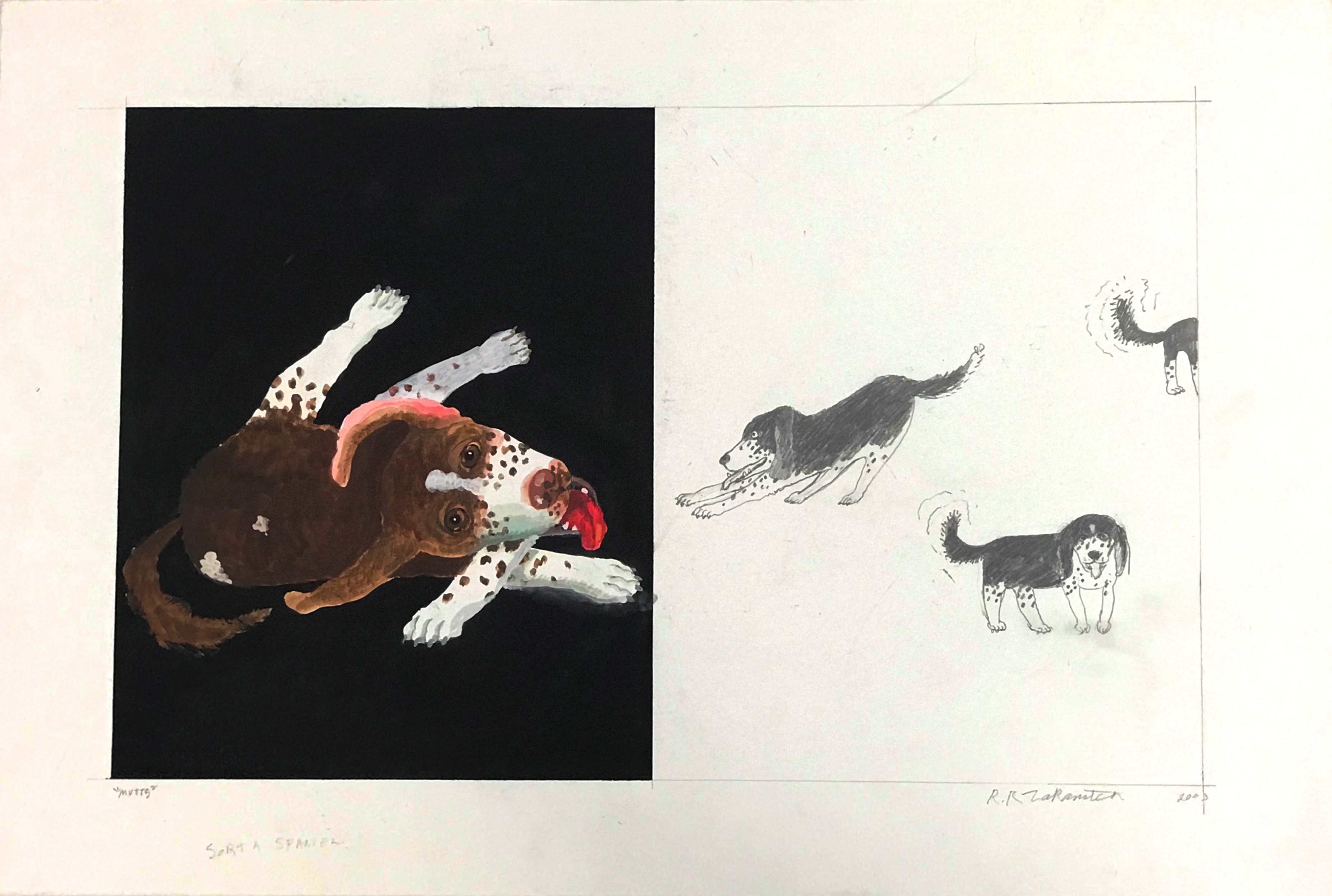 - “Sorta Spaniel” gouache and graphite, 20″ x 30″ SOLD