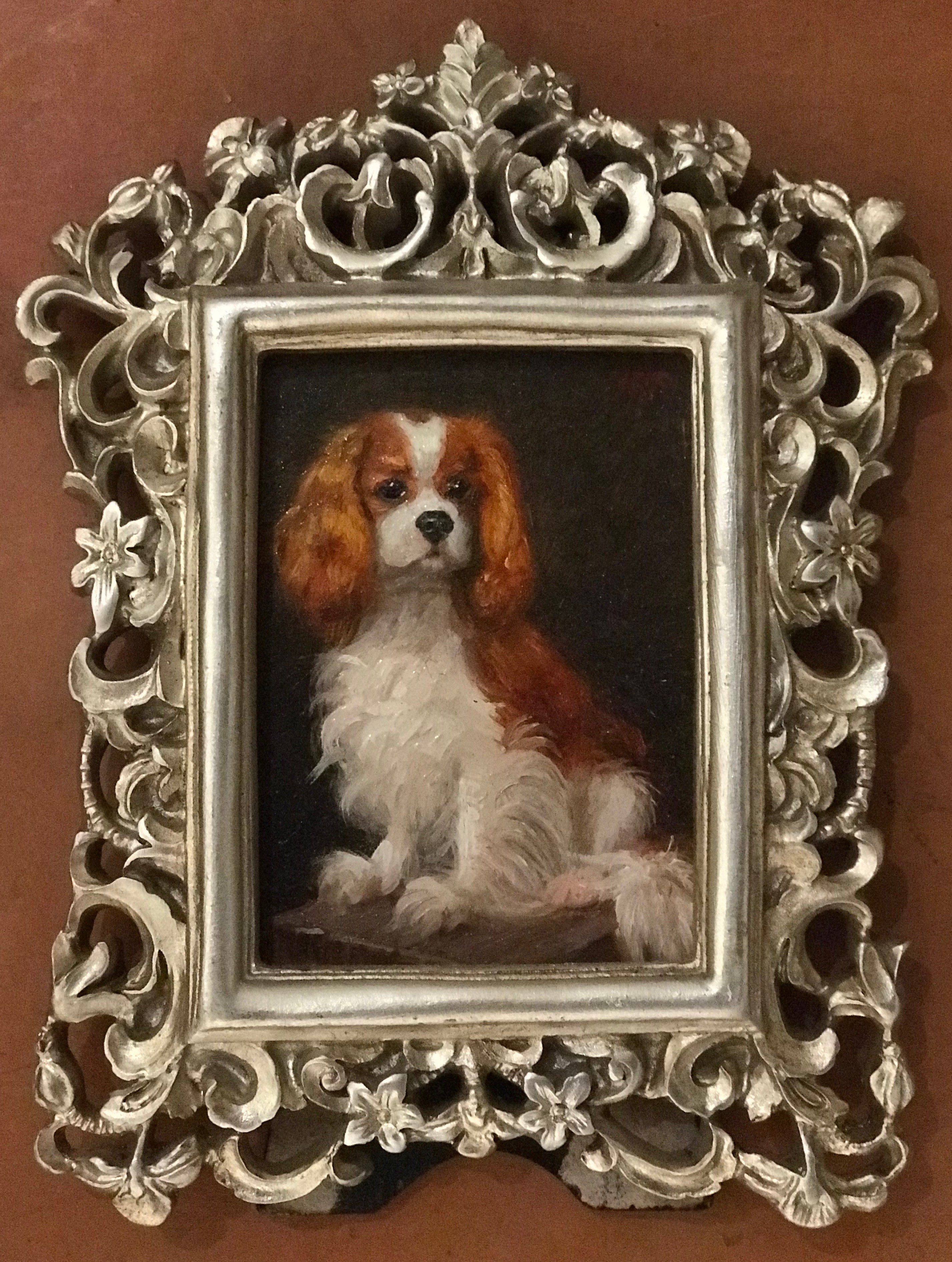 - Vivian Moody “Blenheim King Charles Spaniel,” Oil on panel, 8 x 10″, $450