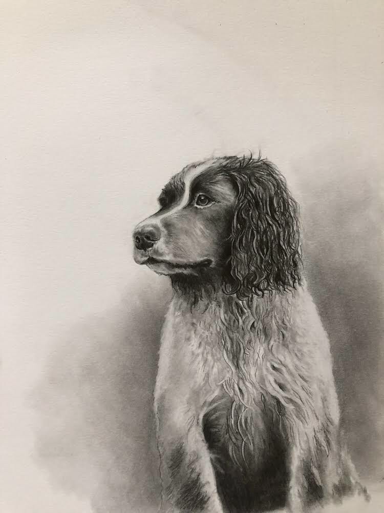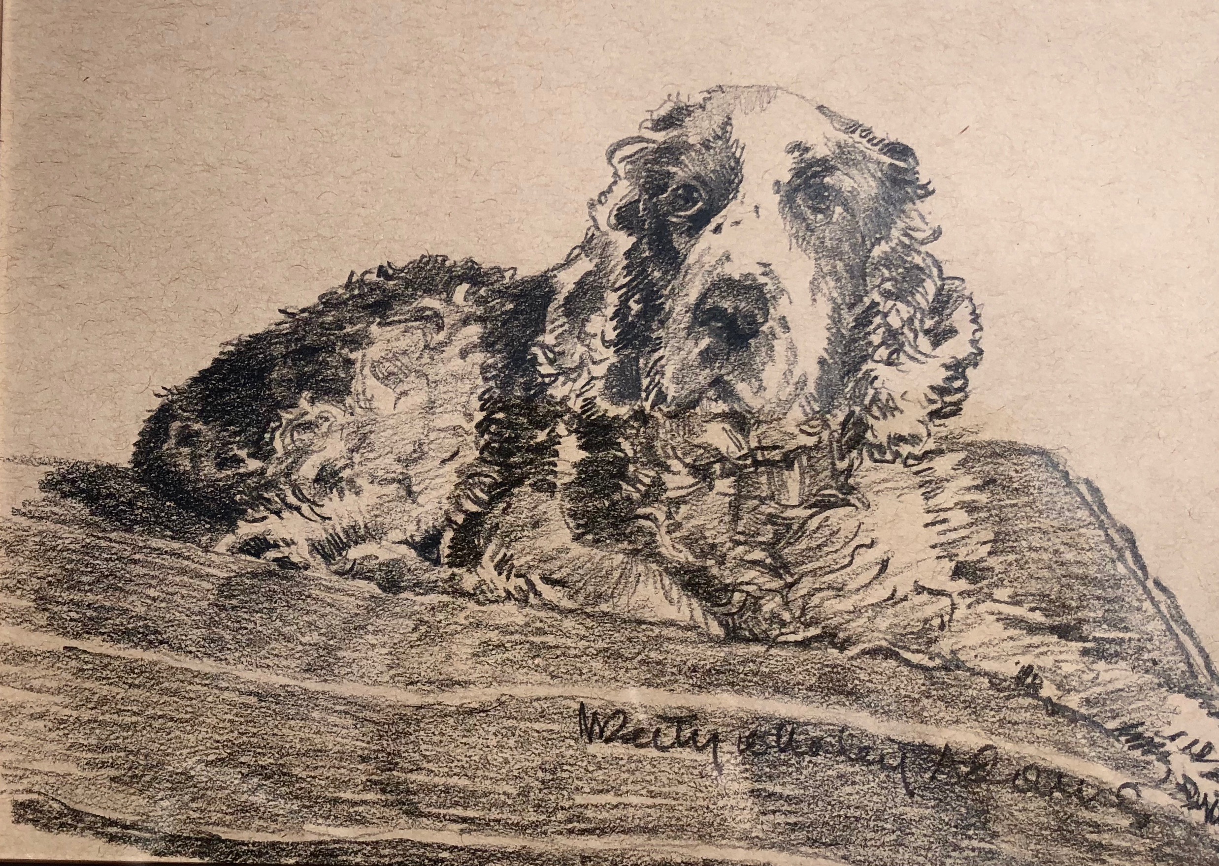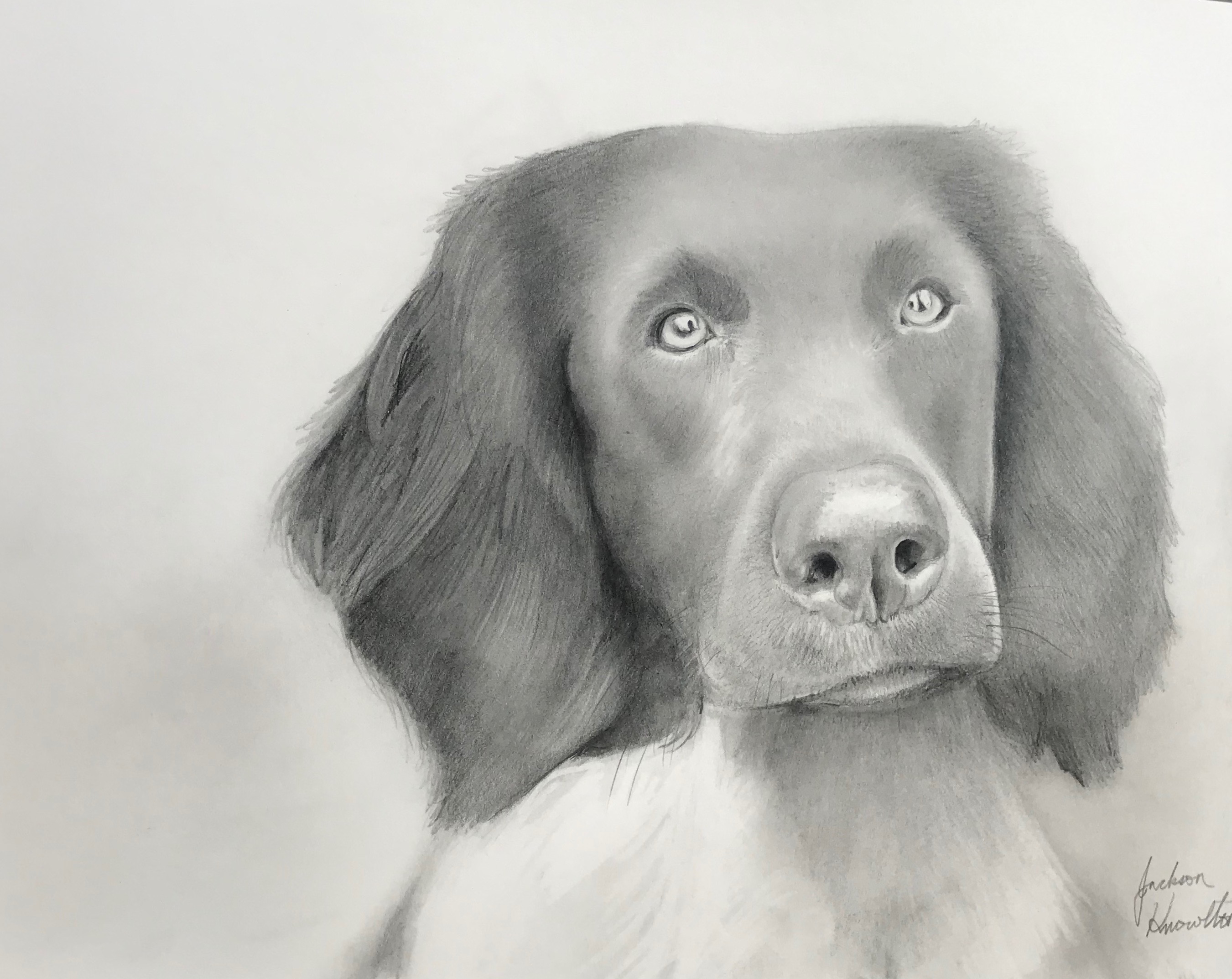 - “A Springer Spaniel”, Marty Whaley Adams, Pencil on paper, 5 1/2 x 8″, $600