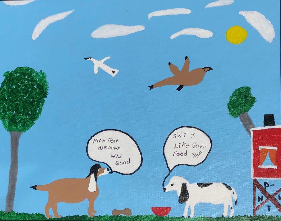 - P-Nut “Chow Time” 16 x 20 acrylic $1800