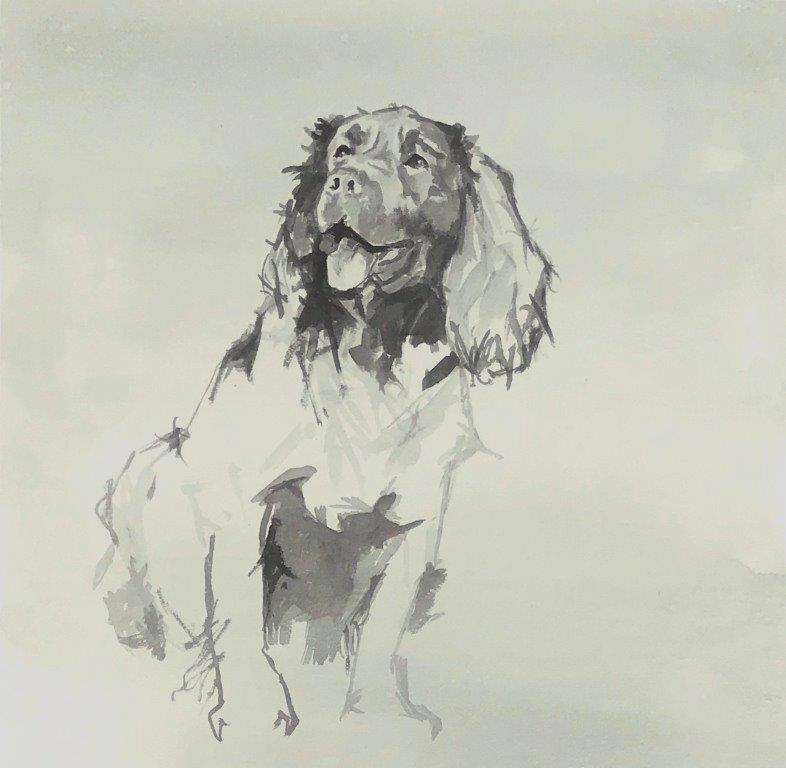 - Ian Mason “Spaniel” 22 x 22 ink on indian rag $965 framed