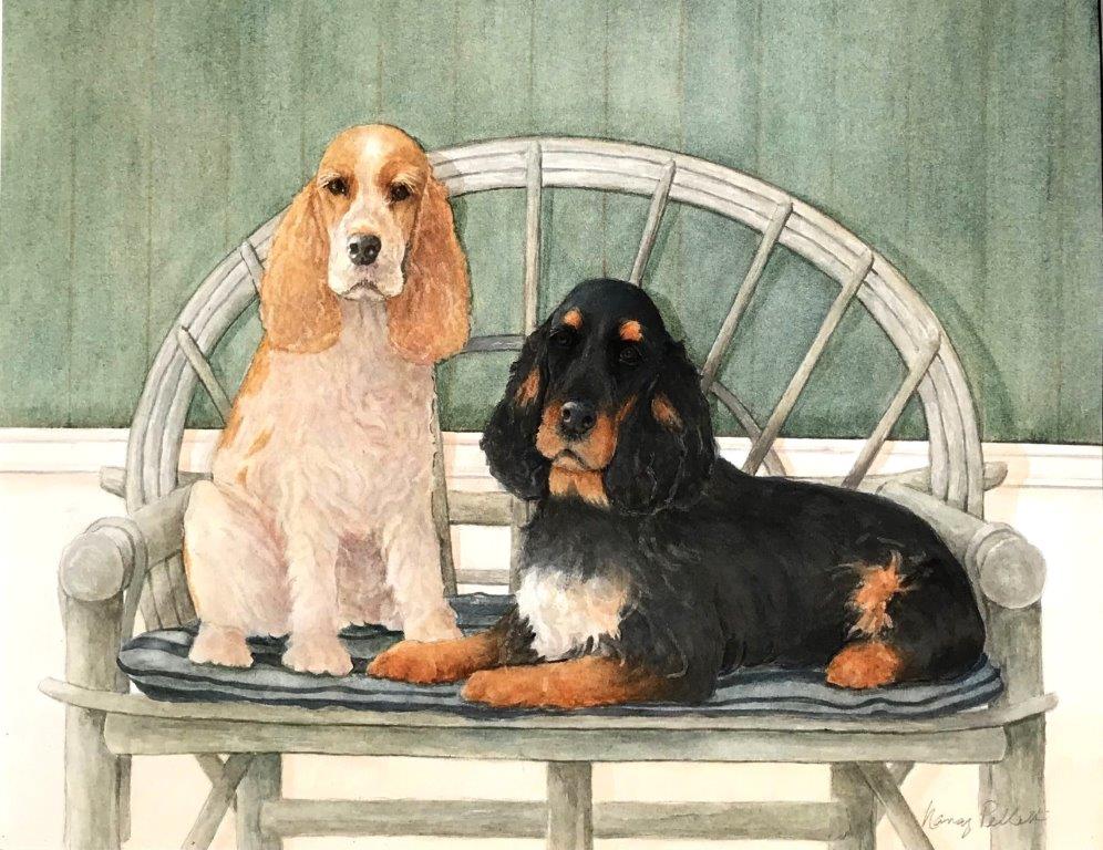 - Nancy Pellatt “English Cockers” watercolor 12 x 15.5 SOLD