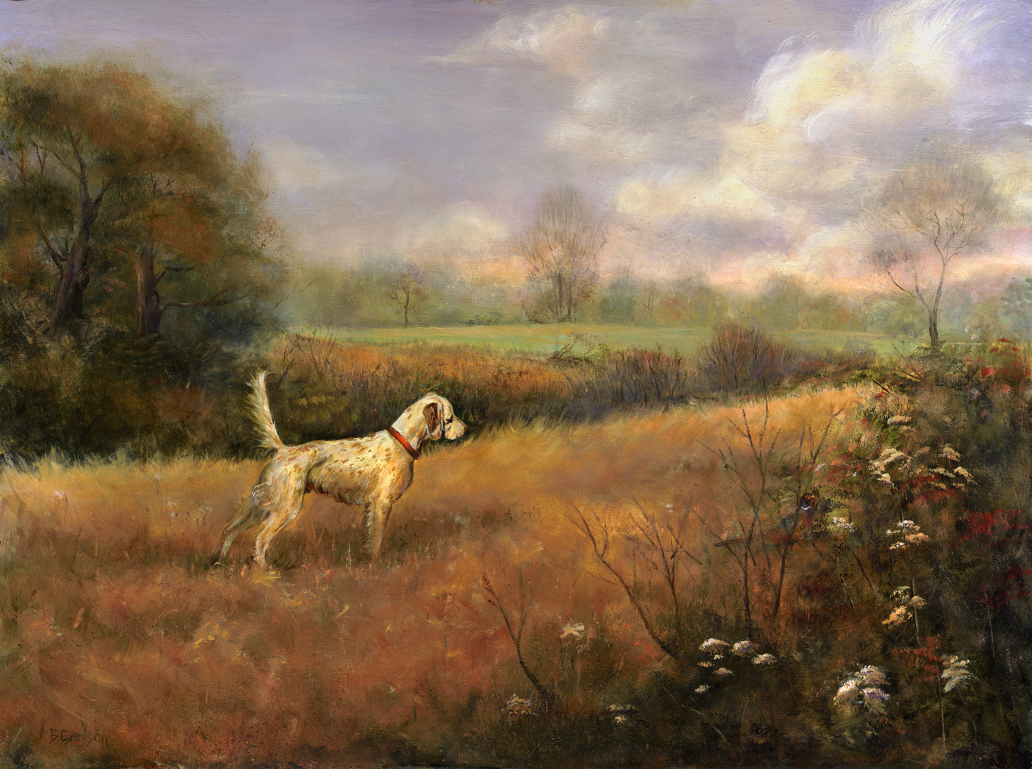 - Beth Carlson, “Pointer in Crookers Field 2, 18” x 24”, oil, $3900