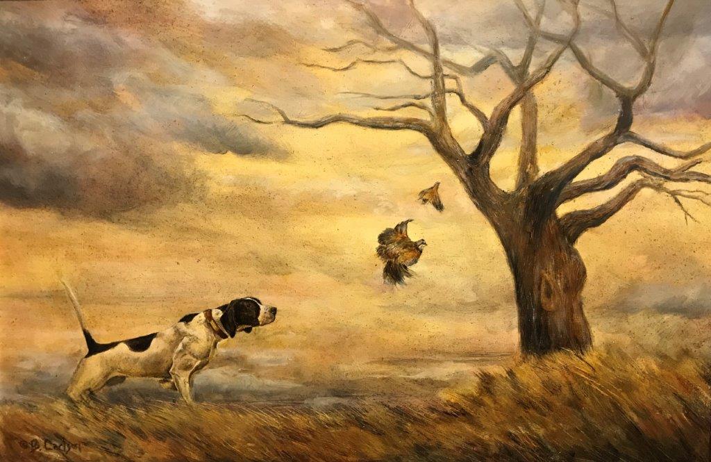- Booth Malone, “Pointer on Point,” oil, 8” x 10”, $750