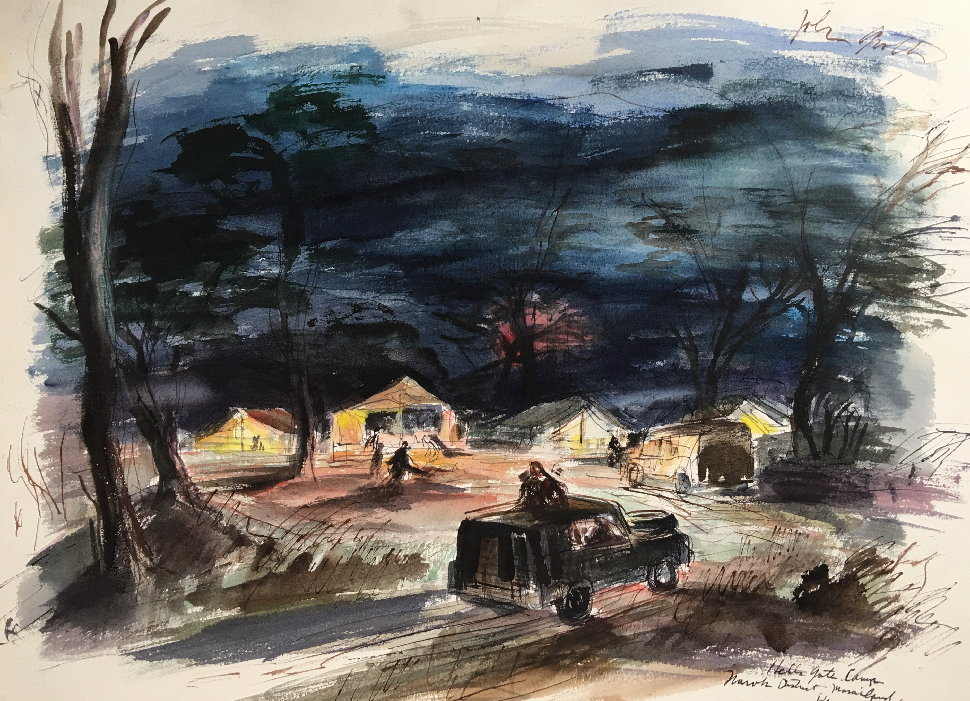 - John Groth (American, 1908-1988), “Hell’s Gate Camp, Narok District, Masailand, Kenya 1963″ watercolor, 22″ x 30” unframed $1500